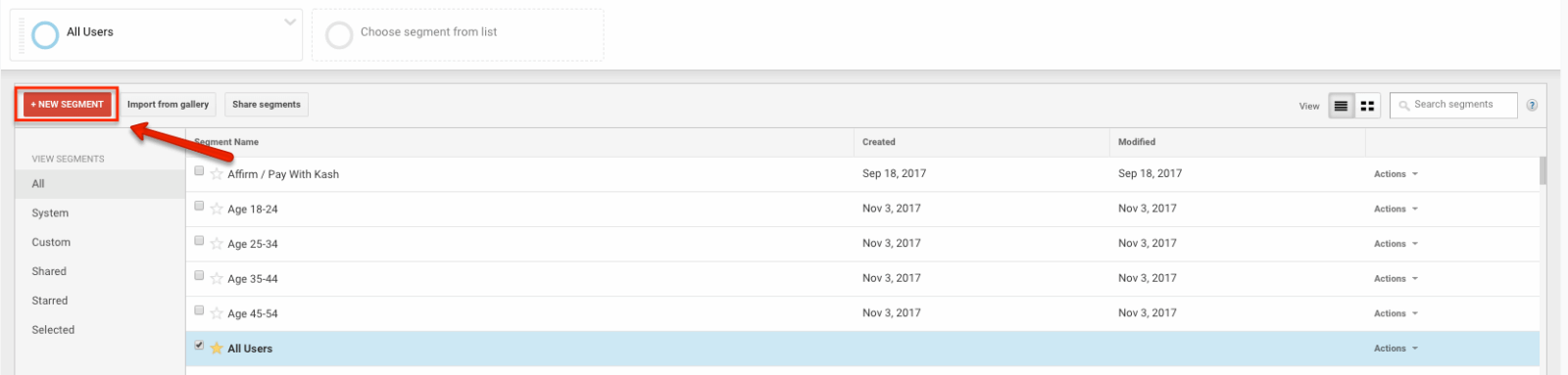 - Create a segment by clicking +Add Segment and press +New Segment