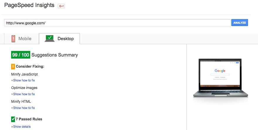 PageSpeed Insights checks the chosen URL to see if it passes 15 rules related to site speed and usability.