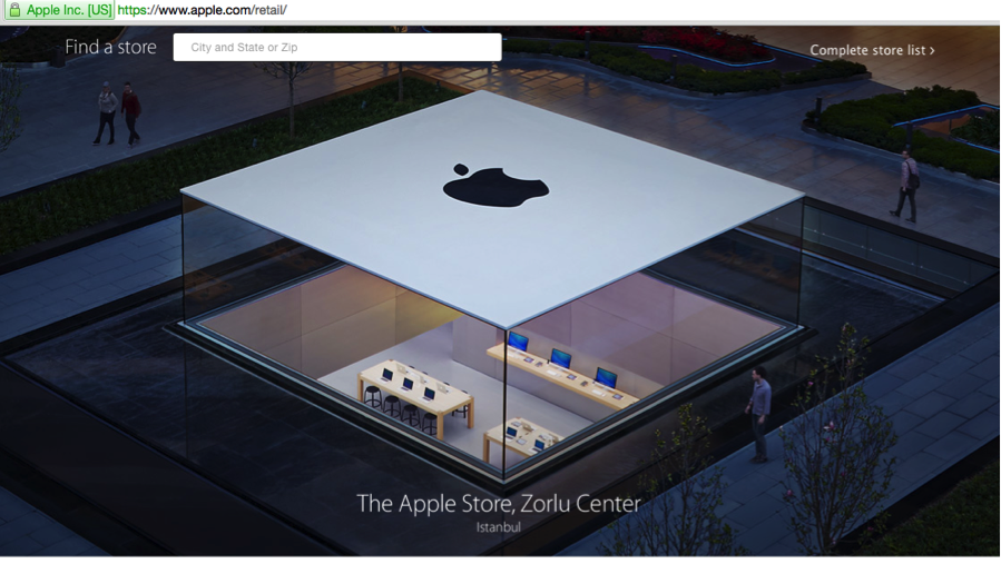 Without having to enter my desired search parameters, the Apple website allows me to view a complete list of all stores.