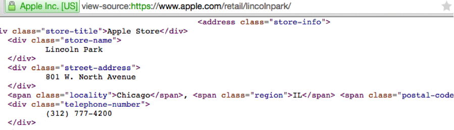 The store information on Apple.com is provided in HTML format, and is easily crawlable by search engines.